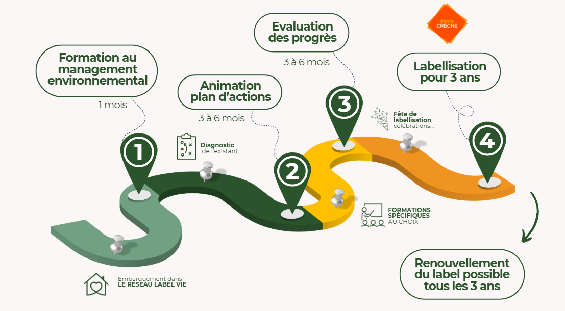 Créé en 2009, c’est le 1er label de développement durable dédié à la petite enfance. Le label Ecolo crèche® est spécifique aux EAJE engagés dans la transition écologique et sociale. Il est renouvelable tous les 3 ans.
